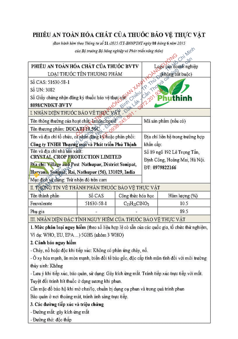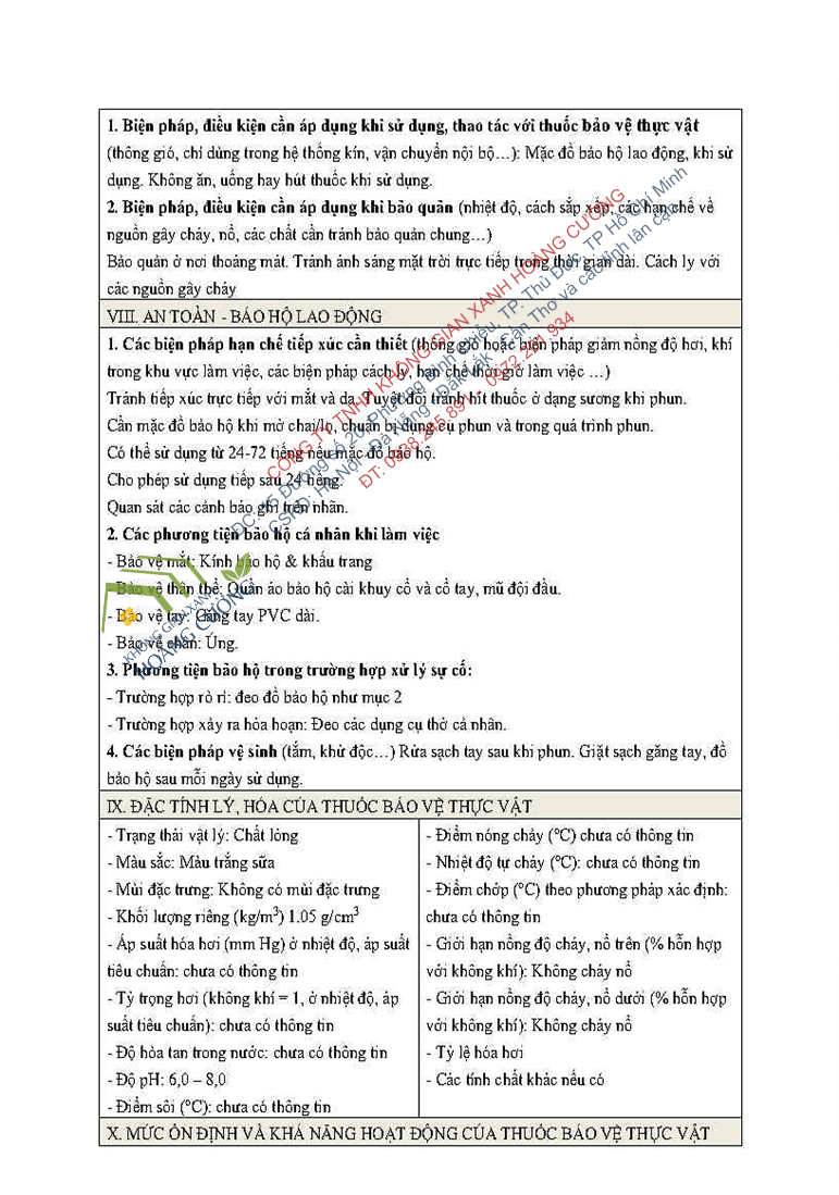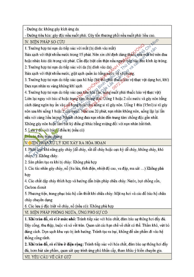 PHIẾU AN TOÀN HÓA CHẤT CỦA THUỐC BẢO VỆ THỰC VẬT (MSDS)